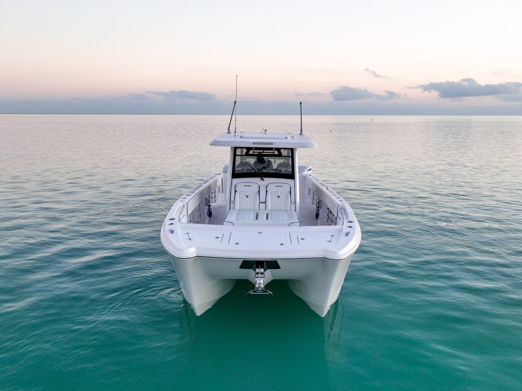 Each hull maintains an optimal length-to-beam ratio, minimizing wave-making resistance and wasted energy. This fine-tuned boat geometry allows Twin Vee catamarans to operate efficiently at higher speeds while keeping turbulence to a minimum. Which is a key factor in consistent fuel economy. Additionally, this contributes to our goal of creating a stable ride and producing the best riding boat on the water.