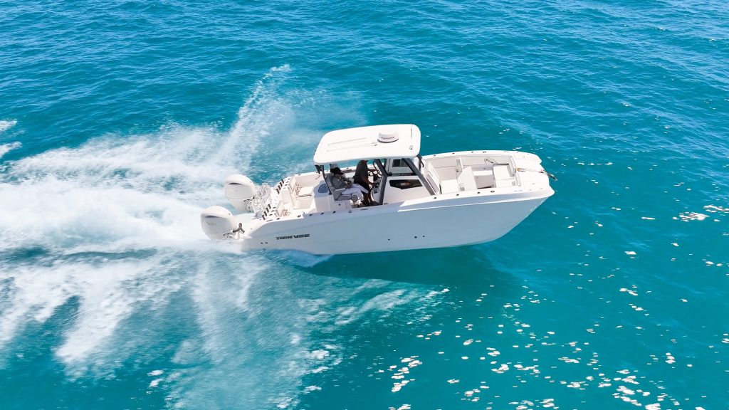 Turning a Twin Vee requires a balance between throttle control and trim adjustment. Because the engines are spaced far apart, they do most of the work when it comes to maneuvering, and small, smooth inputs make all the difference.